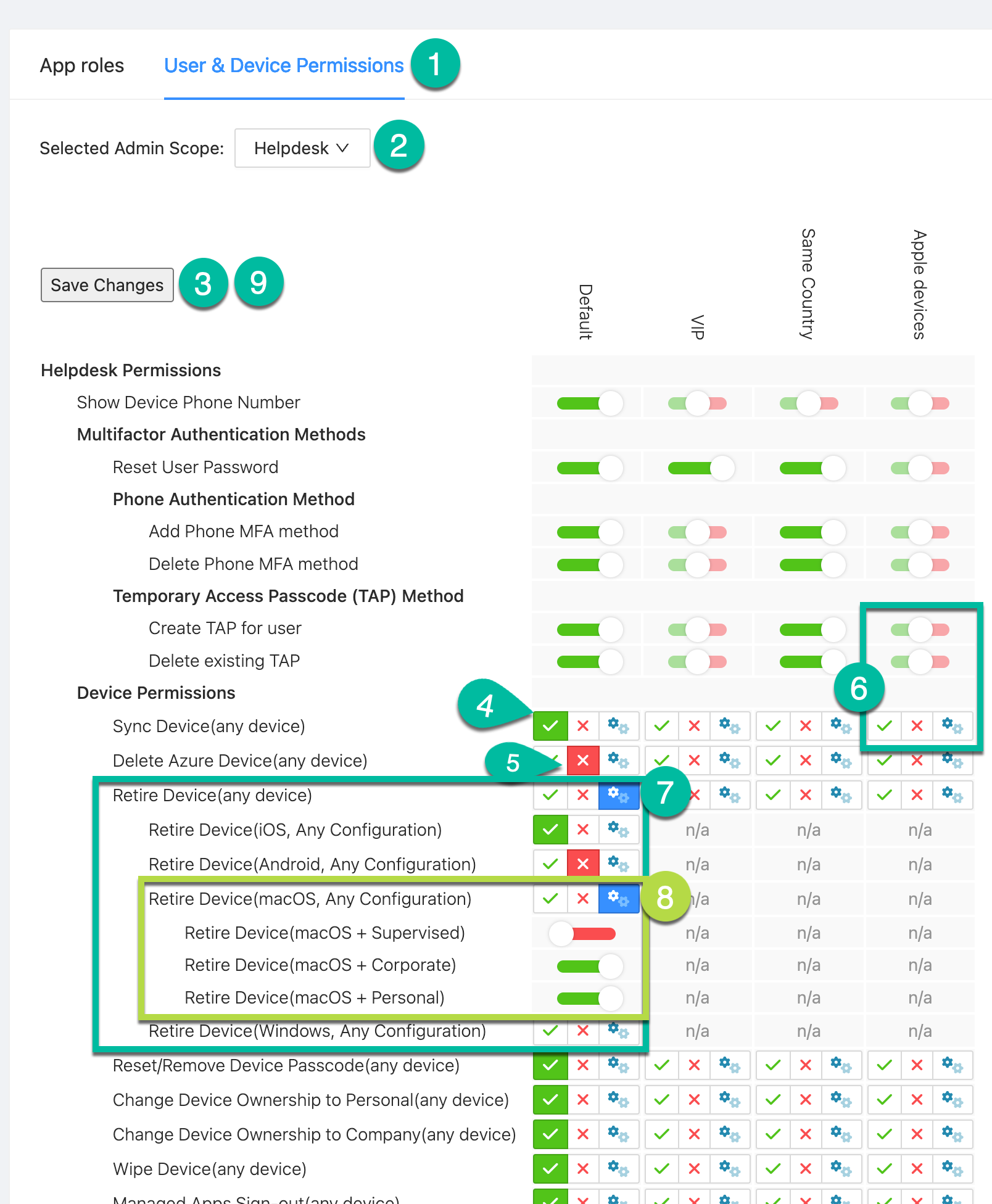 User & Device Permissions follow the same principle as the App roles but provide additional granularity.
